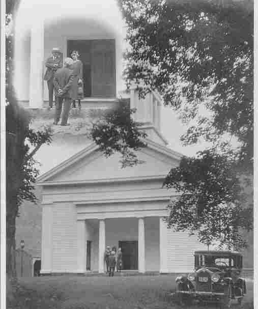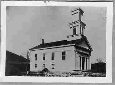 The church building, circa 1900. Notice the two tier bell tower. Today only a single tier remains.